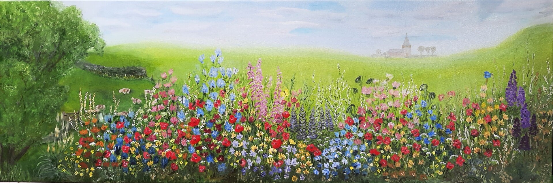 Een zomerse bloemenweide Olieverf op doek 50 x 150 cm te koop 575 euro